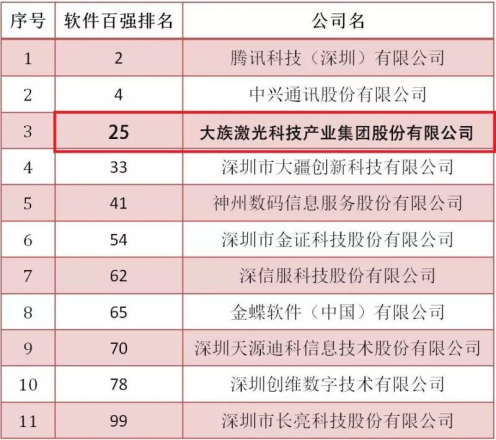 大族激光以第25名的排名,再次挺進中國軟件百強企業名單!