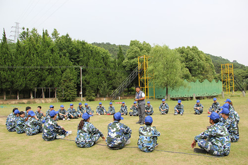 基地位置位于南北湖的半山腰位置。綠林環(huán)繞、青翠欲滴,這里的空氣格外清新,仿佛步入了凈化心靈的圣地。一幅幅美麗的春色畫卷,生機盎然,給人一種神清氣爽的感覺,令人心曠神怡!在基地教練員的帶領下,大家聽從指令,全體隊員換上拓展服裝——迷彩服,這是多少人的迷彩情結啊,今天終于實現了。